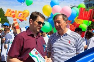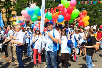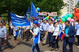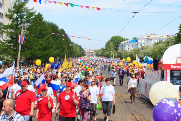 Праздничная колонна прошествовала от пр. Мира до Набережной р. Амур, где состоялся торжественный митинг.