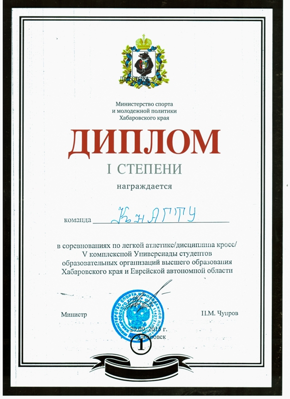 Сборная команда Комсомольского-на-Амуре государственного технического университета под руководством старшего преподавателя кафедры «Физическое воспитание и спорт» А.В. Иванькова одержала уверенную победу в легкоатлетическом кроссе. В состав команды-победительницы вошли: