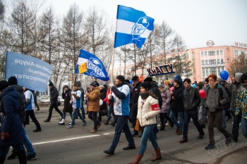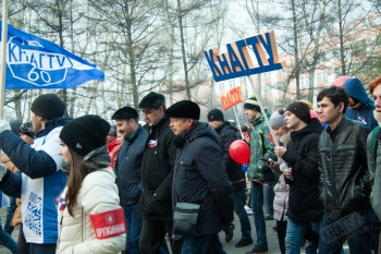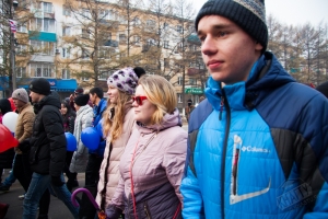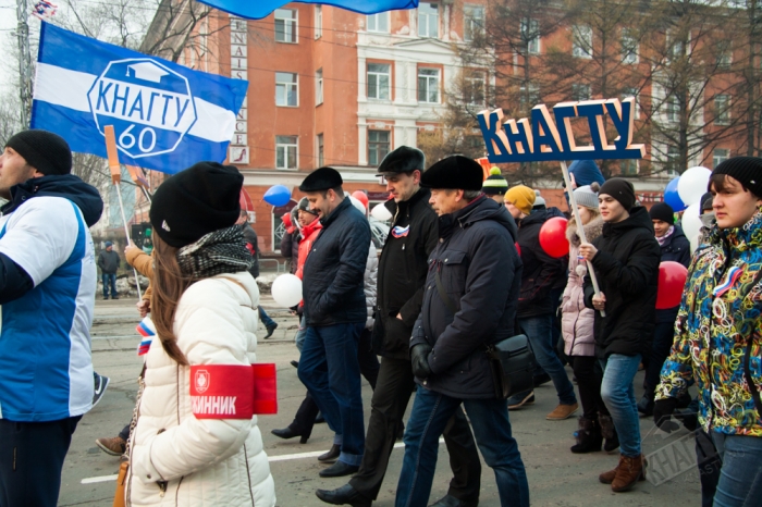 Представители КнАГТУ в праздничной городской колонне прошли по проспекту Мира к площади Юности, где состоялся торжественный митинг.