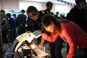 Технические факультеты Комсомольского-на-Амуре государственного технического университета продемонстрировали на ярмарке то, чему смогут научиться будущие студенты. Здесь были представлены макеты самолетов, подводной лодки, с помощью катушки Тесла ребята смогли зажечь лампочки. Школьники также получили возможность попробовать себя в роли сварщиков и исследовать микромир при помощи современного микроскопа и много другое.
