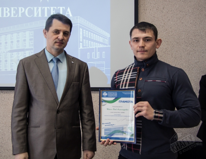 Ректор КнАГТУ, доктор технических наук Э.А. Дмитриев, первый проректор И.В. Макурин, проректор по учебно-воспитательной работе Т.Е. Наливайко, проректор по науке С.В. Белых поздравили студентов и поблагодарили их за столь выдающиеся успехи.