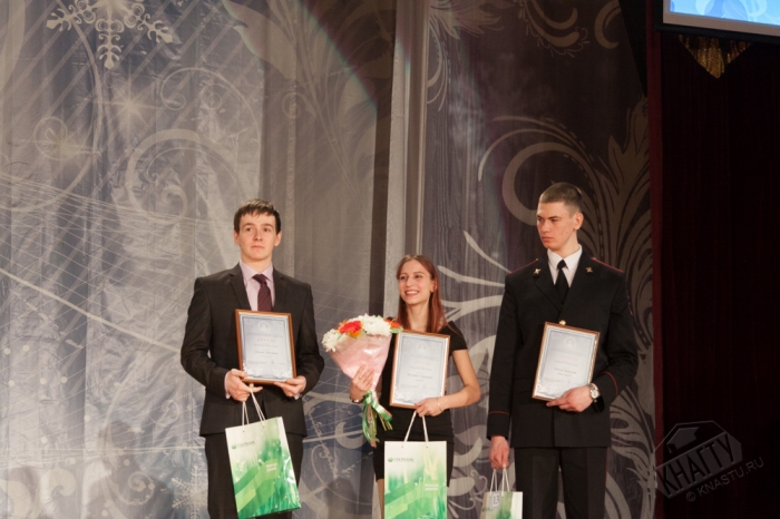Лучшую молодежь Хабаровского края и Еврейской автономной области чествовали в номинациях «За отличные успехи в учебе», «За достижения в науке», «За участие в студенческом самоуправлении», «За активное участие культурно-досуговой деятельности», «За достижения в спорте». Заслуженные награды в этих номинациях получили и студенты Комсомольского-на-Амуре государственного технического университета:
