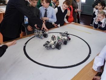 Во второй половине дня свои силы опробовали ребята постарше. В турнирных заездах использовались более сложные роботы, которых дети собрали и запрограммировали самостоятельно. Самым зрелищным стало соревнование «Сумо», где роботы старались вытолкнуть противника из круга. Участники с жаром болели за своих «питомцев». Их поддерживали и младшие ребята.