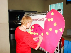 Второй частью акции являлась фотосессия с ангелом – символом Дня всех Влюбленных. Участники фотоссесии были награждены сладкими подарками.
