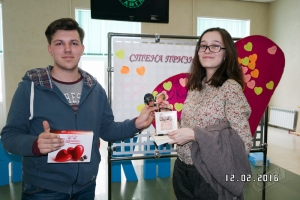 В ходе акции представители студенческой профсоюзной организации КнАГТУ раздавали студентам университета половинки сердец с изображением персонажей мультфильмов. Задачей участников было найти свою вторую половинку. Сложность выполнения задания заключалась в том, что половинки сердец раздавались на разных этажах и в разных корпусах университета. По итогам акции образовалось две пары, которые были награждены сладкими призами.