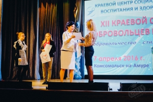 7 апреля 2016 года в Краевом Доме Молодежи состоялся XII Краевой слет добровольцев по здоровому образу жизни, приуроченный ко Всемирному дню здоровья. Организатором Слета выступил Комсомольский филиал КГКУ «Краевой центр социального воспитания и здоровья». На Слёте собрались активная молодежь и подростки города, районов Хабаровского края, которые пропагандируют здоровый образ жизни и занимаются волонтерской деятельностью.
