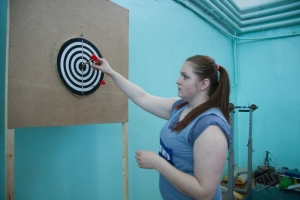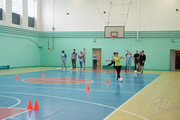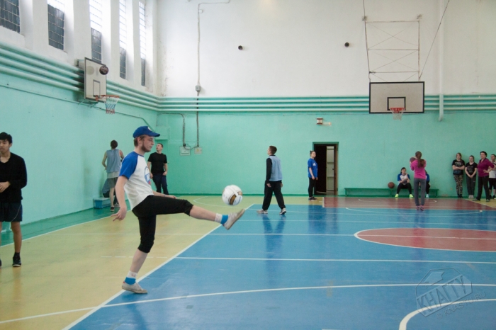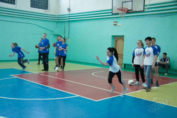 Студенты состязались в следующих видах спорта: броски баскетбольного мяча в кольцо, жонглирование футбольным мячом, эстафета, дартс.