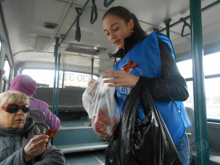 2 мая волонтеры и активисты КнАГТУ присоединились к Всероссийской акции. Студенческий актив раздал жителям города Юности около 300 георгиевских ленточек, в знак памяти героев Великой Отечественной войны. Акция состоялась на площади Володарского, участниками акции стали как люди пожилого возраста, так дети, подростки и молодежь города.