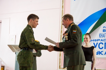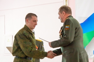 Первый проректор КнАГТУ И.В. Макурин и начальник военной кафедры, полковник С.И. Карпов вручили Почетные грамоты преподавателям и курсантам военной кафедры.