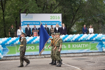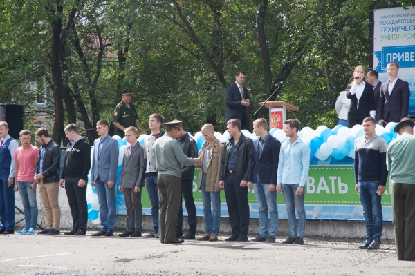 В торжественной линейке, организованной Отделом воспитательной работы, приняли участие более 500 студентов, поступивших на первый курс в КнАГТУ и 36 лицеистов.