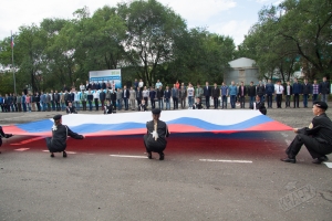 Мероприятие началось с традиционного выноса флага-штандарта и исполнения гимна Российской Федерации.