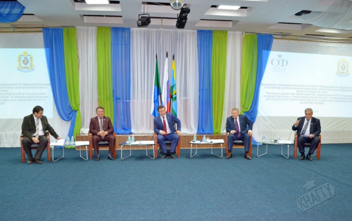 В Комсомольске-на-Амуре прошло выездное совещание Комитета Совета Федерации по федеративному устройству, региональной политике, местному самоуправлению и делам Севера, которое было посвящено развитию транспортной, инженерной и социальной инфраструктуры города Юности. В нём приняли участие сенаторы, представители федеральных министерств, губернатор Хабаровского края Вячеслав Шпорт, глава города Андрей Климов, члены правительства Хабаровского края, представители администрации города, бизнеса, руководители промышленных предприятий, а также ректор Комсомольского-на-Амуре государственного технического университета Э.А. Дмитриев.