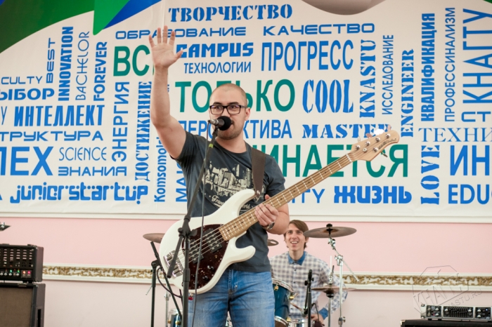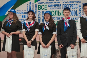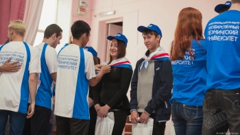 Мероприятие началось с танцев. Школьники под ритмичные мелодии повторяли за студентами-волонтерами танцевальные движения. Еще один музыкальный сюрприз подарила им университетская группа «Бандикуты». А праздничное настроение в зале создавали огромные шары белого, зеленного и синеного цвета, которые школьники передавали друг другу.