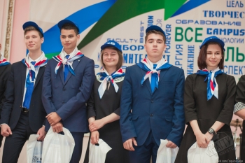 Завершилось церемония посвящения песней «Россия-Чемпионка!» в исполнении студенческого вокального коллектива «Вояж», праздничным конфетти и общей фотографией-селфи на память.