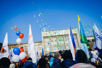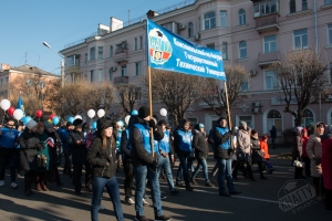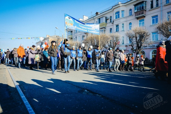 В составе праздничной колонны города Юности, представители Комсомольского-на-Амуре государственного технического университета прошли по проспекту Мира до площади Юности. В шествии и митинге приняли участие около 100 студентов и аспирантов КнАГТУ, в числе которых были студенты и аспиранты из Таджикистана, Республики Союза Мьянма и Китайской народной республики.