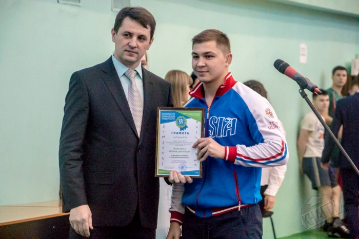 Грамотой ректора университета за высокие достижения в физической культуре и спорте и памятными призами были награждены студенты КнАГТУ - мастера спорта, чемпионы края, ДФО, России и мировые призёры: Эдгар Хачатрян, Евгений Моисеенко, Владимир Кухарев, Елизавета Шульга, Дарья Половинина, Александра Половинина, Роза Мурыгина, Денис Чигрин, Александра Томченко, Сергей Красницкий, Вячеслав Лопатин, Ольга Евсейчик, Антон Раздобреев, Егор Вечканов, Василий Сверкунов, Николай Агеев, Светлана Крылова, Ксения Гребенькова, Максим Голубев, Евгений Стариков, Валерия Лихацкая, Назар Кабанец, Ксения Клопова, Александр Крачун, Роман Янченко.