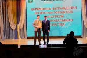 На закрытии Форума состоялась церемония награждения, где благодарностями Главы города за содействие в организации и проведении конкурсов профессионального мастерства были награждены ректор КнАГТУ Э.А. Дмитриев и заведующий кафедрой «Машиностроение и металлургия» П.В. Бахматов.
