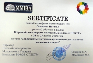 Студенческий медиацентр КнАГТУ принял активное участие в работе площадки Всероссийского форума «Медиа-менеджмент», где прошли образовательные мастер-классы, тренинги по вопросам организации деятельности молодежных медиа. Также представители СтудМИЦ встретились с экспертами в сфере медиа-менеджмента и молодежной политики и обсудили проблемы организации деятельности молодежных и студенческих медиа. Полученные знания и практические умения на молодежном медиафоруме были применены в работе студенческого медиацентра, что позволило создать конкурентоспособный медиапроект, который был признан лучшим в номинации «Сеть. Лучший информационный проект в социальных сетях по теме образования» Всероссийского конкурса СМИ «ПРО Образование-2016».