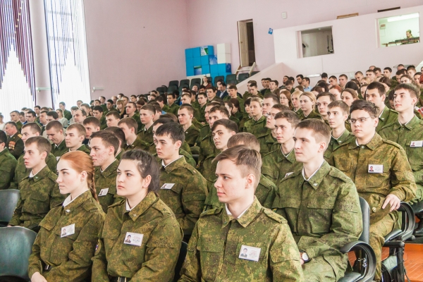 Начальник учебной части военной кафедры, полковник запаса В.А. Шутка подчеркнул особую роль российской армии, которая продолжает надёжно охранять рубежи нашего государства и выполняет миротворческую миссию. Со словами поздравлений перед собравшимися также выступили: доцент военной кафедры, подполковник запаса В.И. Костюченко, курсант 131 учебного взвода А.В. Васильков, курсант 251 учебного взвода С.В. Токарев, младший сержант 344 учебного взвода Е.А. Бубирь.