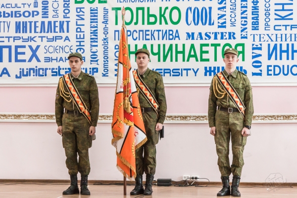 22 февраля 2017 года в актовом зале Комсомольского-на-Амуре государственного технического университета состоялись торжественное собрание и праздничный концерт-поздравление, посвящённые Дню защитника Отечества. Началось мероприятие с торжественного выноса флага и исполнения гимна России.