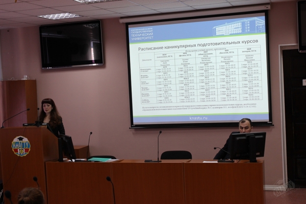 С информацией о факультете/институте выступили декан электротехнического факультета А.С. Гудим и директор института компьютерного проектирования машиностроительных технологий и оборудования П.А. Саблин. О возможностях обучения на самолетостроительном факультете рассказал заведующий кафедрой «Технология самолетостроения» А.В. Бобков. Начальник отдела профориентации и рекламы С.В. Макаренко рассказал школьникам о возможностях портала для абитуриента и дополнительных баллах, начисляемых за индивидуальные достижения абитуриента в КнАГТУ. Ответственный секретарь приемной комиссии Г.М. Гринфельд выступил с информированием о сроках приемной кампании 2017 года и правилах приема.