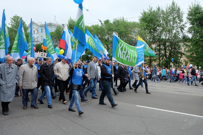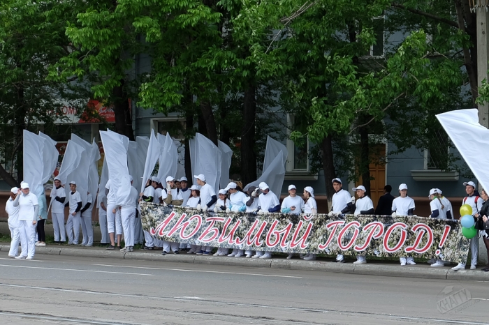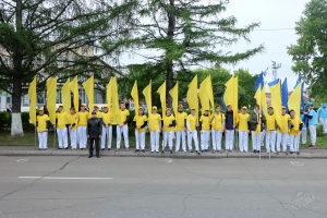 Ярко украшенная колонна нашего университета в составе масштабной общегородской колонны прошла по пр. Мира до набережной р. Амур, где по традиции состоялись торжественный митинг, церемония возложения корзин с цветами, цветов к монументу Первостроителям.
