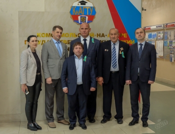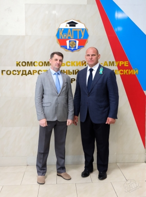 В рамках своего визита в город Юности А.А. Карелин во главе делегации именитых спортсменов-борцов посетил Комсомольский-на-Амуре государственный технический университет, где прошла его встреча с ректором КнАГТУ Э.А. Дмитриевым и руководством вуза.