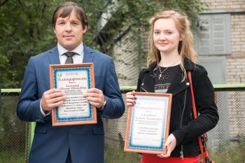В рамках торжественной линейки состоялось награждение благодарственными письмами главы города Комсомольска-на-Амуре: за активное участие в содействии и проведении праздничных мероприятий, посвященных 85-летию со дня образования г. Комсомольска-на-Амуре, была награждена проректор по учебно-воспитательной работе КнАГТУ Т.Е. Наливайко; за оказание активной помощи в подготовке спортсменов для участия в праздничном шествии, посвященном 85-летию со дня образования города Комсомольска-на-Амуре, был награжден старший преподаватель кафедры «Физического воспитания и спорта» Е.Е. Саламин, также благодарственные письма главы города Комсомольска-на-Амуре вручили активным студентам КнАГТУ: за оказание содействия в охране общественного порядка на территории муниципального образования «Город Комсомольск-на-Амуре» членам добровольной общественной дружины «Легион» Николаю Щербакову и Евгении Бахуринской, за активное участие в творческой программе, посвященной 85-летию со дня образования города Комсомольска-на-Амуре, Евгении Жариковой, за активную жизненную позицию и активное участие в городских мероприятиях Ксении Сапожник. По поручению главы города А.В. Климова награждение провел главный специалист отдела по молодежной политике администрации города В.Г. Остапенко.
