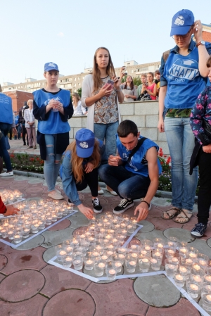 Студенты Комсомольского-на-Амуре государственного технического университета совместно с другими участниками молодежной акции «Нет террору!» сложили слово «МИР» из зажженных свечей в память о тех, кто погиб от рук террористов.