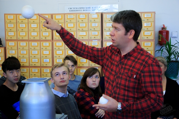 26 октября 2017 г. в читальном зале КнАГТУ состоялось Информационно-просветительское мероприятие «Человек поднялся в небо», организованное научно-технической библиотекой совместно с кафедрой «Системы автоматизированного проектирования» (САПР) самолетостроительного факультета. На мероприятии присутствовали учащиеся средних школ города, иностранные слушатели подготовительного отделения и студенты факультета довузовской подготовки университета.