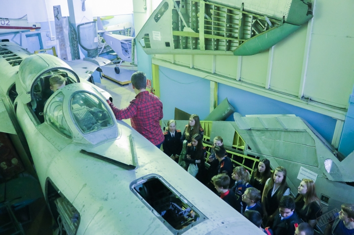 В завершение мероприятия участников ждала интересная экскурсия в лабораторию кафедры «Технология самолетостроения», где ребята имели возможность сфотографироваться в кабине самолета СУ-17, ознакомиться с устройством образцов частей самолета.