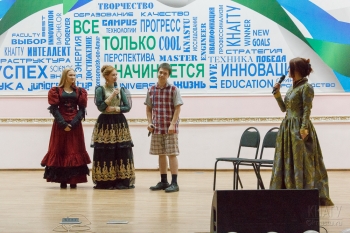 Студенты кафедры ЛМК подготовили интересные театрализованные и музыкальные постановки на английском, показав достойный уровень владения иностранным языком. Вокальный коллектив университета «Вояж» исполнил жизнеутверждающую песню «Миллион голосов». Всех порадовало выступление команды КВН «Level Up», ребята показали несколько зарисовок и стэмов.