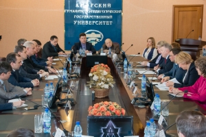 Далее ректор привел ряд успешных действующих центров и проектов вуза: Технопарк, Инжиниринговый центр, Юридическая клиника, Центр промышленной робототехники и передовых промышленных технологий, проект по изготовлению бора-гипса, проектирование благоустройства дворовых территорий г. Комсомольска-на-Амуре и др.
