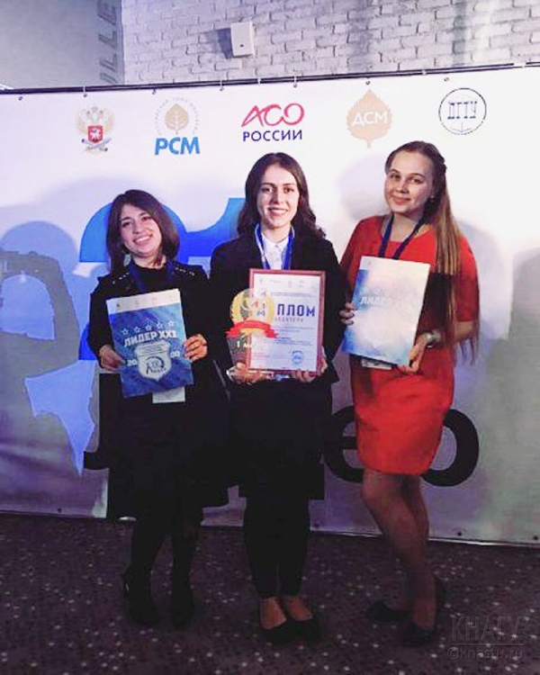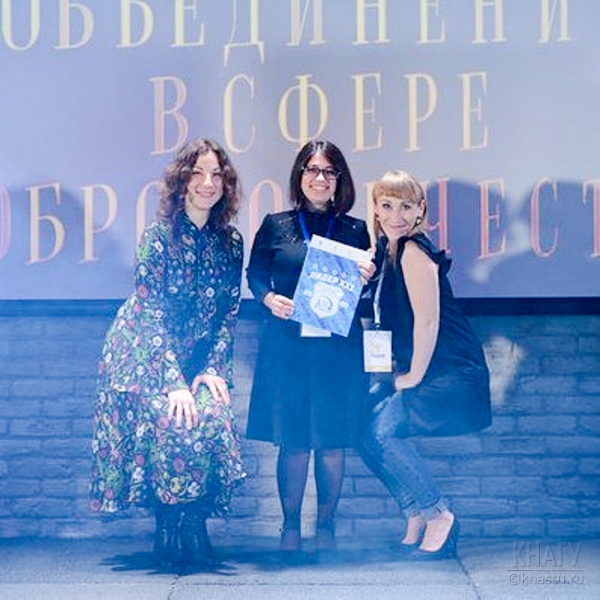 Руководитель студенческого отряда добровольцев при студенческом психологическом клубе «Аспект» КнАГУ, студентка электротехнического факультета Евгения Никитина представила на конкурсе Комсомольский-на-Амуре государственный университет и заняла второе место в номинации «Лучший руководитель студенческого объединения в сфере добровольчества».
