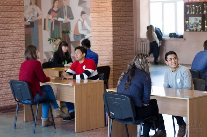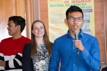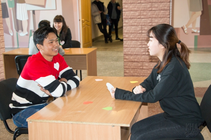 Открыли мероприятие ведущие, которые напомнили всем историю праздника, предложили участникам встречи озвучить послание своей второй половинке или близкому человеку. Оригинальной стала валентинка студента из Мьянмы, который поздравил свою подругу на родном языке.