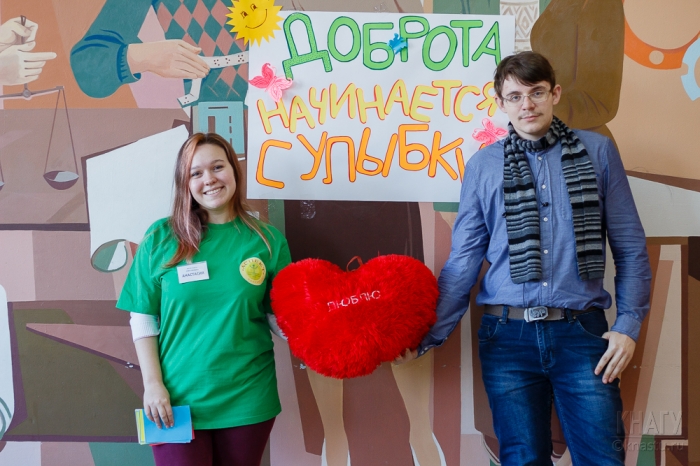 Студенты Комсомольского-на-Амуре государственного университета приняли участие в акции, приуроченной к Международному дню спонтанного проявления доброты, который отмечается по всему миру ежегодно 17 февраля. Мероприятие было организованно студенческим психологическим клубом «Аспект» при содействии отдела организации воспитательной работы.
