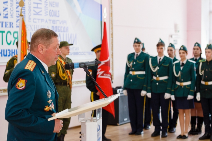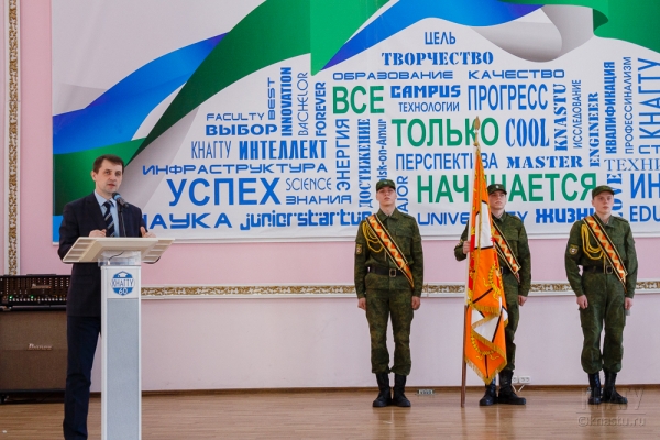 С поздравлениями к собравшимся преподавателям, сотрудникам и курсантам военной кафедры обратились: ректор университета Э.А. Дмитриев, начальник военной кафедры, полковник С.И. Карпов, начальник цикла связи военной кафедры, подполковник запаса В.А. Зеленов, начальник цикла тактики военной кафедры подполковник запаса В.К. Сотников, а также курсант 162 учебного взвода Семен Поляков и курсант 354 ученого взвода Маргарита Цевелева.