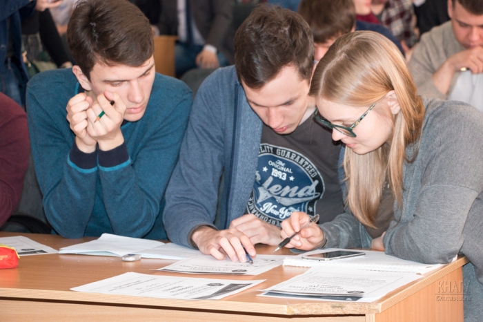 В финале студентам были предложены три олимпиадные задачи различного уровня сложности по математике. По итогам конкурса первое место заняла команда ФКТ «Команда», второе ‒ команда ФКТ «Золотое сечение», третье ‒ команда АмГПГУ «Утомлённые Фихтенгольцем». Поздравляем с победой в чемпионате студентов факультета компьютерных технологий: Илью Недикова (5ВТб-1), Александру Кондоурову (5ВТб-1), Максима Ливеня (5ВТб-1), Евгения Моляренко (6ИБ-1), Владислава Серикова (6ИБ-1).