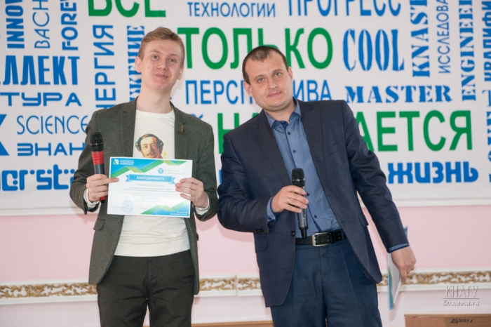 Открыла мероприятие замечательная песня о Комсомольске-на-Амуре, исполненная студенткой факультета компьютерных технологий, солисткой вокального коллектива «Камертон», Евгенией Жариковой. Ведущим чемпионата стал студент кафедры информационной безопасности автоматизированных систем, председатель Молодежной общественной палаты Роман Кузьменко, который объяснял ход игры и проводил интересные конкурсы-интерактивы с командами и болельщиками.