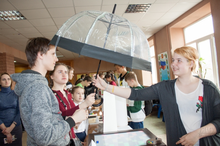 В первый конкурсный день участники представили свои проекты в виде экспонатов (проектов, образцов и др.) на экспозиционной площадке. В работе выставки приняли участие учащиеся 5–11-х классов общеобразовательных школ, лицея, студенты младших курсов (1-го, 2-го) КнАГУ и учащиеся учреждений профессионального образования. Юные конструкторы представили свои изобретения, творческие и исследовательские проекты, электронные схемы, управляемые модели роботов, элементы «умного дома». Посетить выставку смог любой желающий. Гости выставки получили возможность не только ознакомиться с представленными на ней экспонатами, но и принять участие в голосовании, отметить лучший, по их мнению, проект.