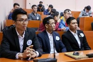 10 мая 2018 года состоялся финал олимпиады, на котором участники представили свои творческие работы – презентации на тему «Мой университет». В своих работах ребята рассказали об истории КнАГУ и этапах его становления, об учебной и внеучебной деятельности, органах студенческого самоуправления и жизни в студенческом городке. Так, Каххоров Абдусамад, студент 1 курса ФКС, рассказал о том, как проходит обучение на факультете кадастра и строительства и какое оборудование используется в учебном процессе. Казаков Маъмурджон, студент 1 курса ФКТ, представил спортивную жизнь КнАГУ и свои спортивные достижения. Желденбаев Нурсултан, студент 1 курса ССФ, рассказал присутствующим о деятельности первичной профсоюзной организации студентов. Мирзоев Абузар, студент 1 курса ФДП, показал участникам свой видеоролик об университете, в котором рассказал о подразделениях вуза, сопровождающих учебный процесс, и учебных корпусах.