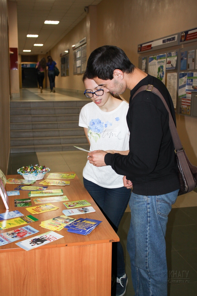 Посредством викторины-теста «А много ли мы знаем о курении?» активисты клуба рассказали студентам, как влияет никотин и другие вредные вещества, содержащиеся в сигаретах, на разные органы и системы органов человека. Активное участие в викторине приняли иностранные учащиеся вуза. Также был развернут информационный стол «Возьми с собой», на котором была представлена информация о центрах города Комсомольска-на-Амуре, где можно получить консультацию и помощь в преодолении зависимостей.