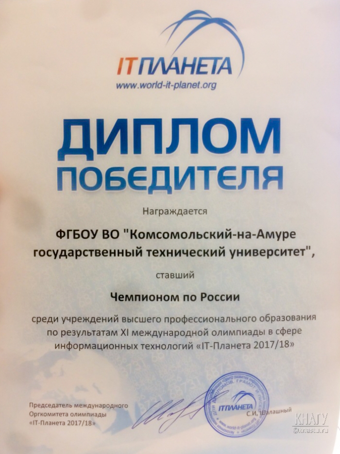 КнАГУ ‒ победитель ХI Международной олимпиады в сфере информационных технологий «IT-планета – 2017/18» среди вузов России