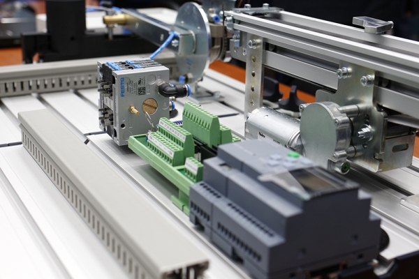 Во второй лаборатории – лаборатории промышленной автоматики – представлено оборудование, которое позволяет изучить принципы работы и основы проектирования автоматизированных систем, начиная с изучения отдельных элементов (пневматика, гидравлика, датчики, контроллеры и т. д.) и заканчивая построением сложных систем управления крупными производственными линиями. На презентации присутствовал региональный представитель «Фесто Дидактик Россия» ООО «ФЕСТО-РФ» Е.В. Рогонов, выразивший слова благодарности КнАГУ и электротехническому факультету за работу: