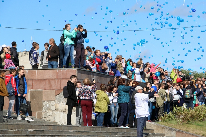 После церемонии открытия студенты КнАГУ вместе с остальными участниками мероприятия приняли участие во флешмобе, выстроившись в слово «ЖИВАЯ СТЕНА» в знак благодарности всем, кто в сентябре 2013 года героически боролся со стихией и отстоял город. По сигналу в небо были выпущены синие воздушные шары, олицетворяющие уход воды.