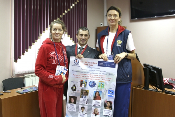 13 сентября 2018 г. в Комсомольском-на-Амуре государственном университете состоялась встреча студентов с олимпийской делегацией от Российского союза спортсменов. Визит спортсменов в город Юности состоялся по инициативе Российского союза спортсменов при поддержке Благотворительного фонда Елены и Геннадия Тимченко в рамках благотворительной программы «Олимпийские легенды – детям и молодёжи России». В состав делегации вошли пятеро участников олимпиад разных лет: двукратная олимпийская чемпионка по волейболу, заслуженный мастер спорта СССР Нина Смолеева; трёхкратный призёр олимпийских игр по академической гребле, заслуженный мастер спорта СССР Антонина Зеликович; олимпийская чемпионка по баскетболу, заслуженный мастер спорта России Ирина Сумникова; олимпийская чемпионка по баскетболу, заслуженный мастер спорта России Елена Худашова; бронзовый призёр олимпийских игр по футболу, заслуженный мастер спорта СССР (в 70-е годы играл в составе футбольного клуба «СКА-Хабаровск») Сергей Ольшанский. Руководит делегацией Наталья Боярская.