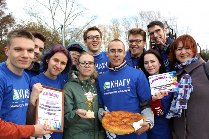 В итоге увлекательного состязания наши студенты стали победителями «Осеннего СтудоБУМа – 2018». Команду КнАГУ наградили большим пирогом, дипломом и кубком победителя.