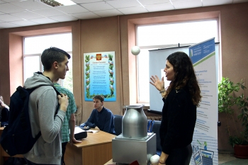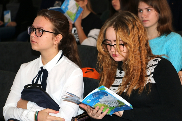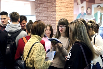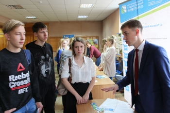 Далее начальник отдела профориентации и рекламы С.В. Макаренко подробно остановился на направлениях подготовки, реализуемых в КнАГУ. Было отмечено, что первокурсники, поступившие в университете на очную форму обучения с высокими конкурсными баллами, получают повышенную стипендию, размер которой варьируется от 5000 до 15000 рублей в месяц.