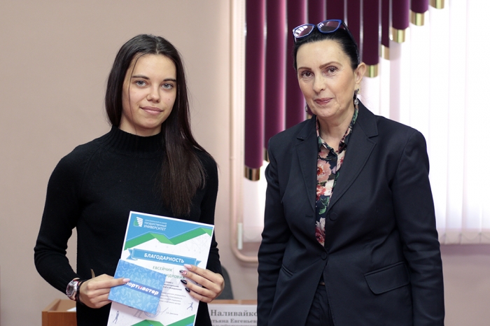 В рамках мероприятия прошла церемония вручения благодарственных писем выдающимся спортсменам университета, которую провела проректор по учебно-воспитательной работе Т.Е. Наливайко.