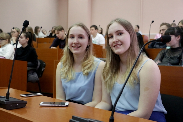 Дарья и Анастасия Шангутовы (гр. 7АУб-1, ЭТФ) рассказали о победе в ХI Международной олимпиаде в сфере информационных технологий «IT-планета-2017/2018», финал которой проходил в г. Тюмени. Команда в составе Анастасии Шангутовой, Дарьи Шангутовой и Ярослава Ерофеева презентовала автоматизированно-программный комплекс «Ткацкий станок» и заняла 2-е место в конкурсе свободной робототехники «РобоФабрика» (номинация «Проект»). Девушки рассказали, что их путь в университет начался ещё в школьные годы через участие в деятельности студенческого конструкторского бюро.
